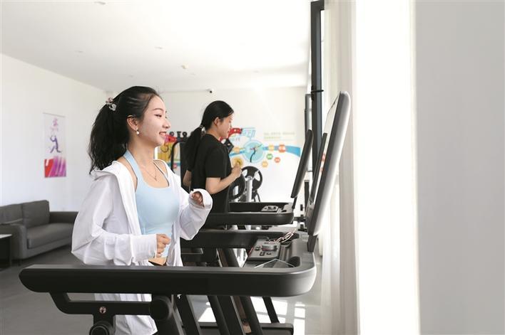 5月13日,在可克达拉市汇聚·未来城人才小区健身室,大学生志愿服务西部计划志愿者莫凡诗(左)在跑步健身。作为四师可克达拉市精心打造的人才公寓,该小区投资2.6亿元,建有住房500套,配备了人才之家、图书室、健身室、乒乓球室、室外篮球场等设施,让人才不仅“引进来”,更能“融进来”“留得住”。 兵团日报常驻记者 杨俊钦 摄