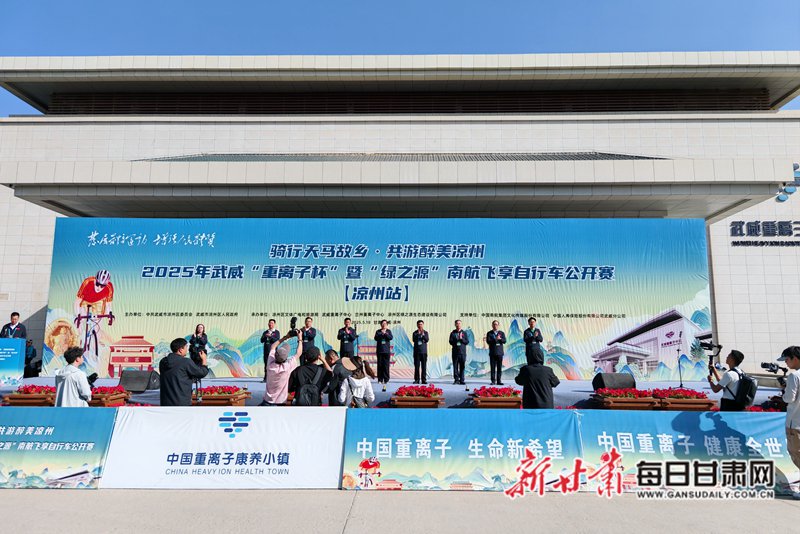 每日甘肃网武威讯(新甘肃·每日甘肃网记者 陈德政 实习生 马茸若)骑行天马故乡,共游醉美凉州。5月18日上午,2025年武威“重离子杯”暨“绿之源”南航飞享自行车公开赛(凉州站)开赛,来自全国各地的1100余名参赛者骑行在青山与绿水间,尽览醉美凉州的生态画卷。