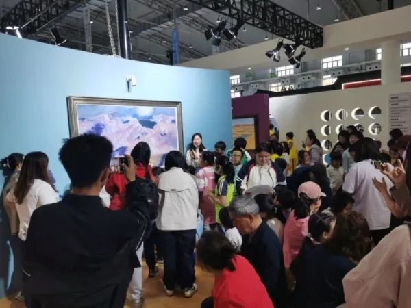 在中俄美术家主题油画作品展厅,逼真的长白山风景引得学生们驻足惊叹:“画得跟照片一样!我去过长白山,这景色太熟悉了!”