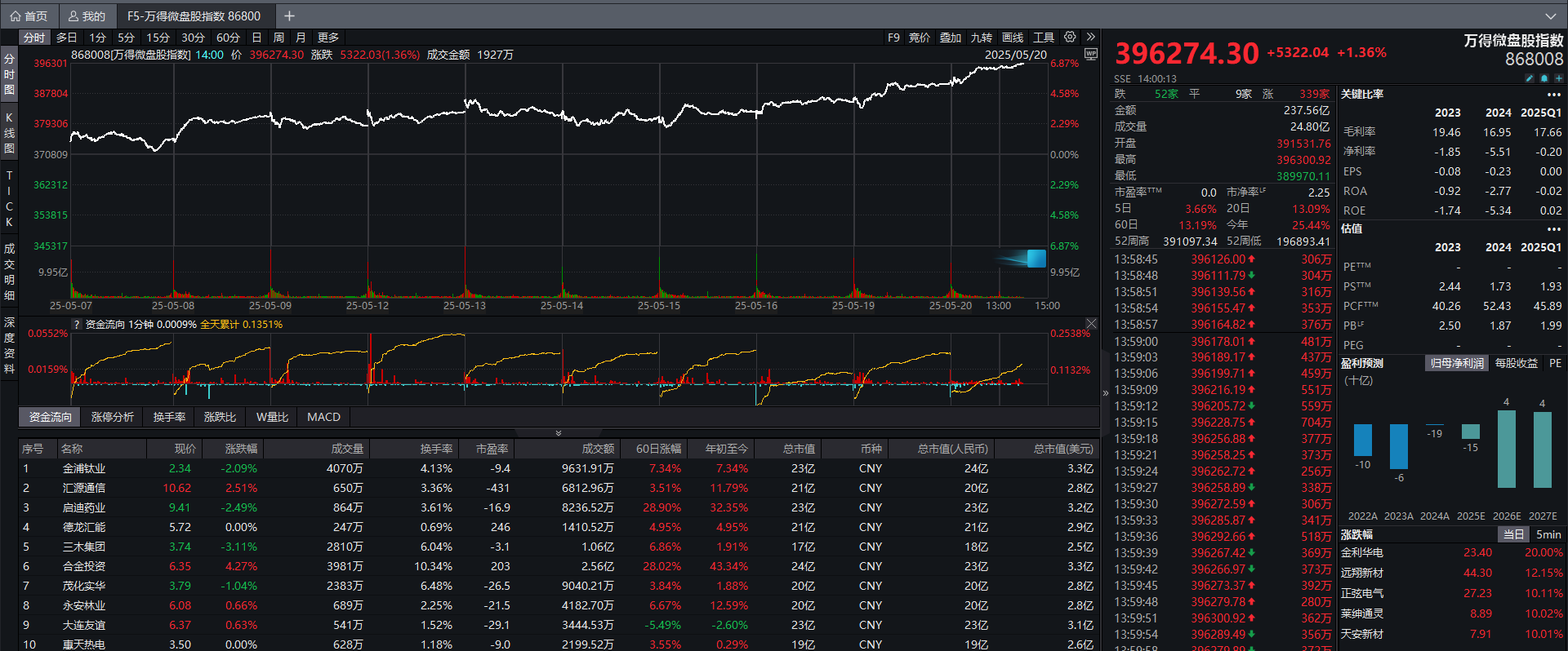 5月20日,微盘股整体活跃,截至14点记者发稿时,万得微盘股指数(868008.WI)涨超1%,再创历史新高。