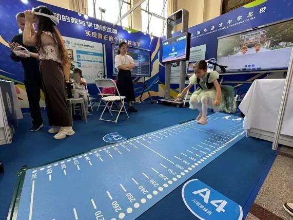进才中学北校展区,观众尝试AI辅助运动。