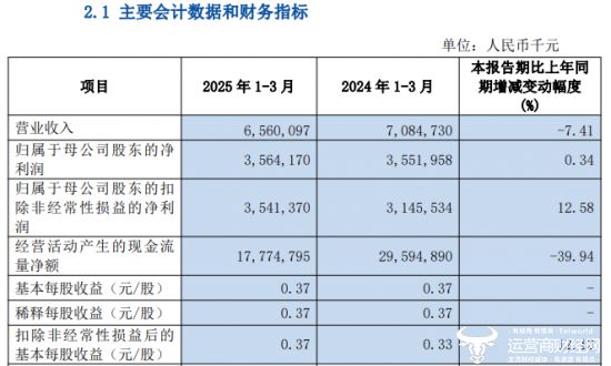 值得一提的是,上海农商行发布的2025年第一季度报告显示,该行在一季度实现营业收入约为65.60亿元,同比下降7.41%;同时,这一季度归属于母公司股东的净利润约为35.64亿元,同比增长0.34%。
