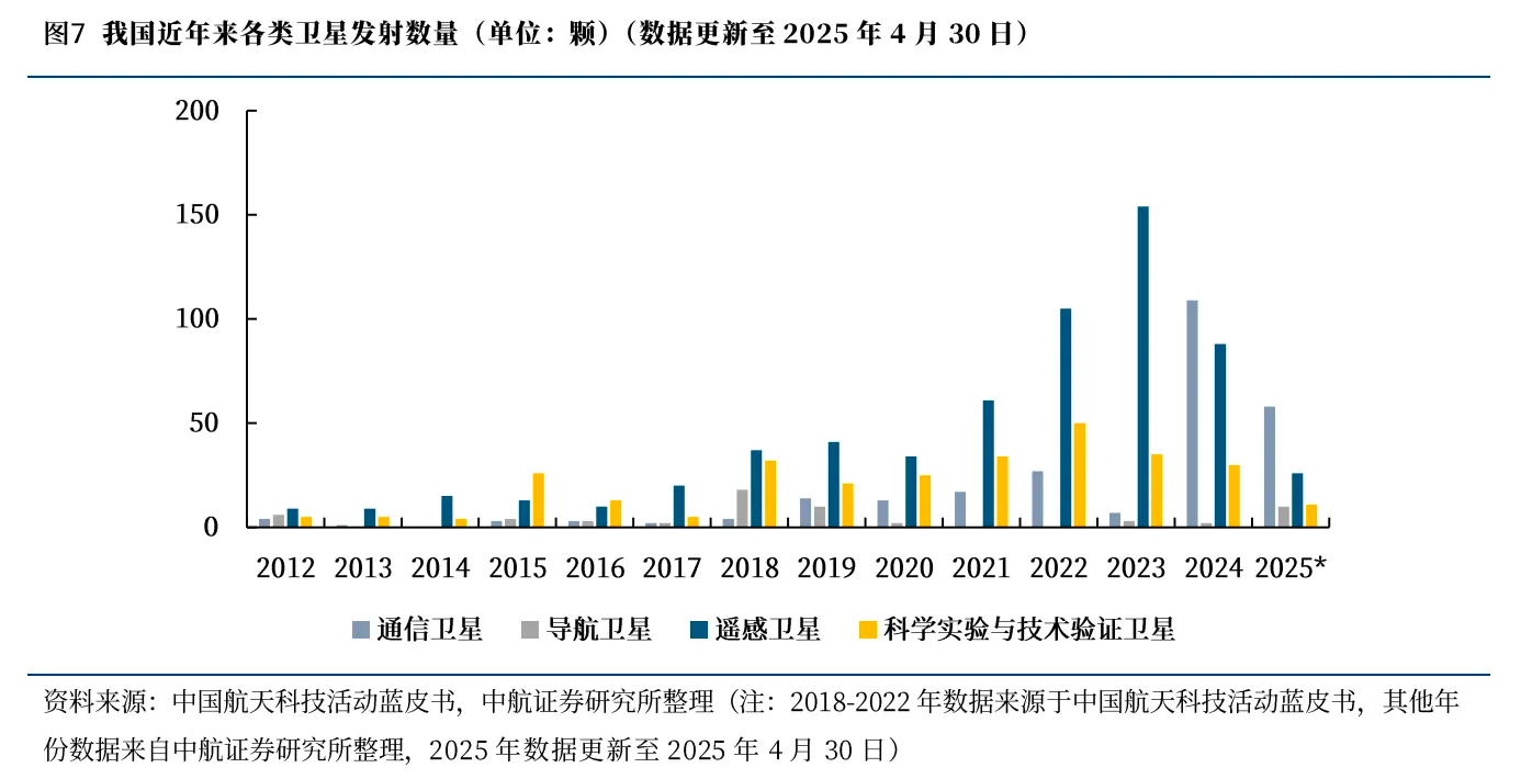 从2024年年报数据来看,卫星发射和制造环节的相关公司业绩有所承压。但是2025年以来,我国进入常态化发射期,发射密度提升。