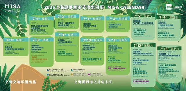 5月20日,上海交响乐团与上海市教育委员会联合黄浦区、徐汇区人民政府等共同启动“上海医药邀您共创未来——2025上海夏季音乐节”(MISA),并正式公布节目阵容。作为“上海之夏”城市定制活动的重要项目,本届音乐节以“写给未来”为主题,融合多元艺术形式与环保理念,将于7月1日至13日为市民呈现29场线下演出、20余场线上直播及丰富的延展活动,打造沉浸式音乐盛宴。