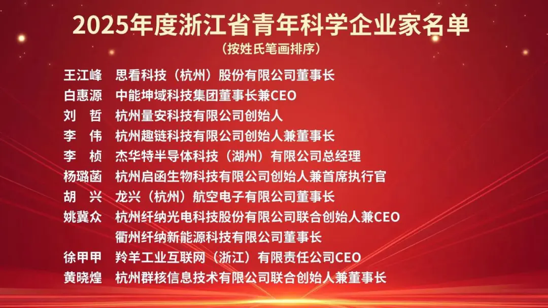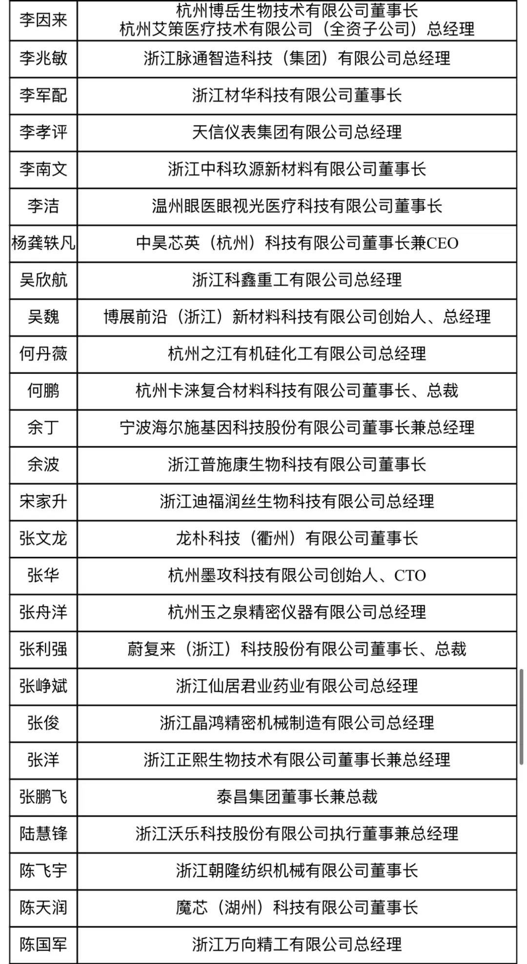 100名2025浙江省科技型企业家和100名浙江省青年科技型企业家正式公布。