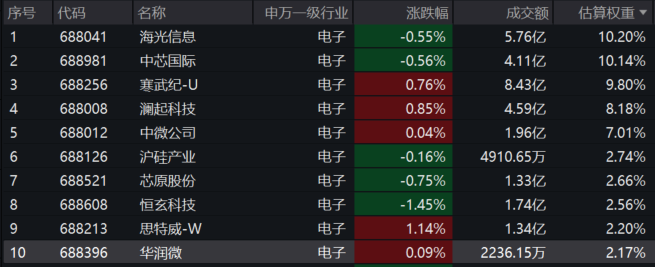 【科创芯片50ETF(588750)标的指数前十大成分股】
