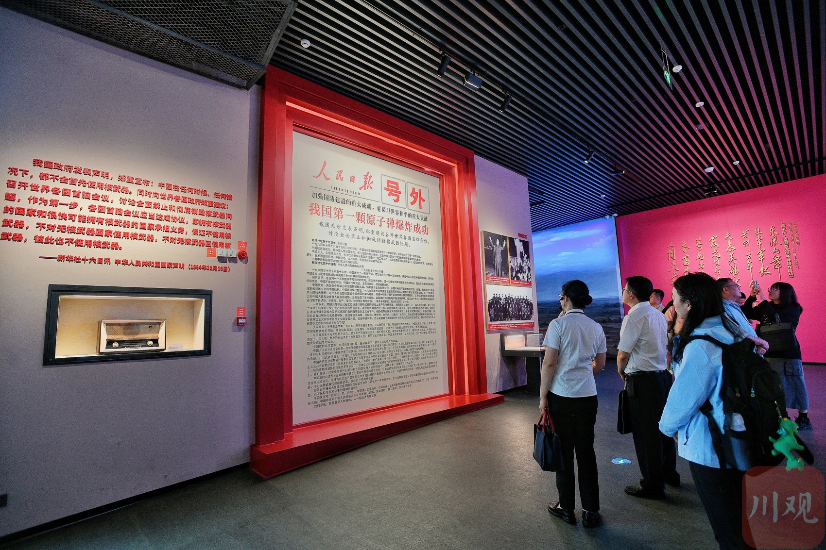 四川两弹城博物馆内景。四川两弹城博物馆于2024年6月对外开放,建筑面积12000平方米,展厅面积1万平方米,馆内展陈内容以“两弹”发展历程为主线、“两弹”研制为重点,以“两弹一星”精神为内涵,以三线文物及实物为主,通过文史资料、实物模型、场景复原以及多媒体互动等形式介绍了我国核武器事业发展光辉历程与科技成就。