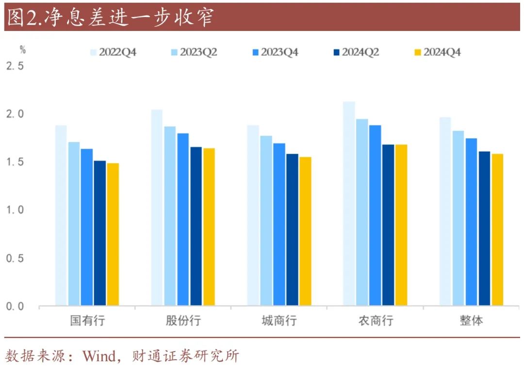 建设银行:“考虑到今年我国将实施适度宽松的货币政策,而且央行表示将适时降准降息,LPR 利率和金融市场利率未来仍有小幅下行的可能。我们预计 2025 年银行业净息差仍面临一定下行压力,但下行的幅度预计会小于去年。”