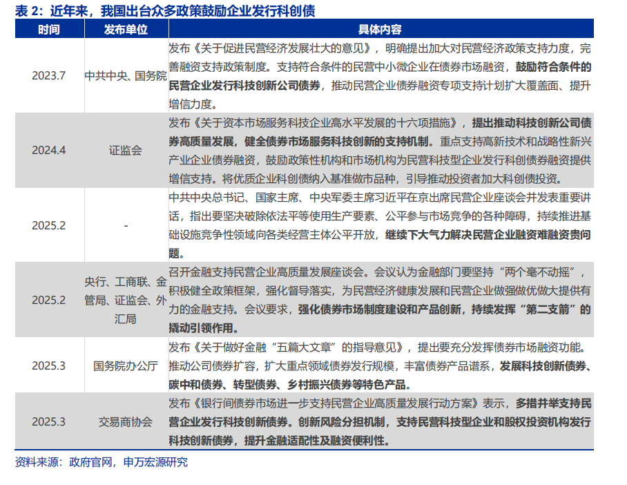 更早在2025年3月6日,十四届全国人大三次会议经济主题记者会上,央行行长潘功胜已提出,将会同证监会、科技部等部门,创新推出债券市场的“科技板”,丰富科技创新债券的产品体系,重点支持支持金融机构、成长/成熟期科技型企业、头部私募股权投资/创投机构等三类发行主体。