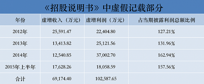 为了能够顺利上市,*ST奇信从2012年便开始粉饰业绩。2012年至2015年上半年,公司通过“签订虚假或放大金额的工程合同”、“对内部承包项目少计成本”等方式,分别虚增利润2.24亿元、2.51亿元、3.70亿元、1.80亿元,累计虚增利润10.26亿元,虚增利润在当期披露利润总额中的占比均在100%以上。