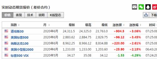 重启经济的新指引发布后,美股三大股指期货集体飙涨。截止北京时间7点25左右,道指期货涨3.86%,标普500指数期货涨3.45%,纳指期货涨2.61%。