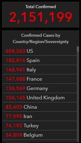 根据美国约翰斯·霍普金斯大学新冠肺炎疫情统计数据显示,截至北京时间4月17日6时30分左右,美国累计确诊658263例,死亡32186例,与前一天6时30分数据相比,美国新增确诊病例23288例,新增死亡4246例,16日美国单日死亡人数创下了新高。全球确诊人数达到215.11万人,死亡14.27万人。