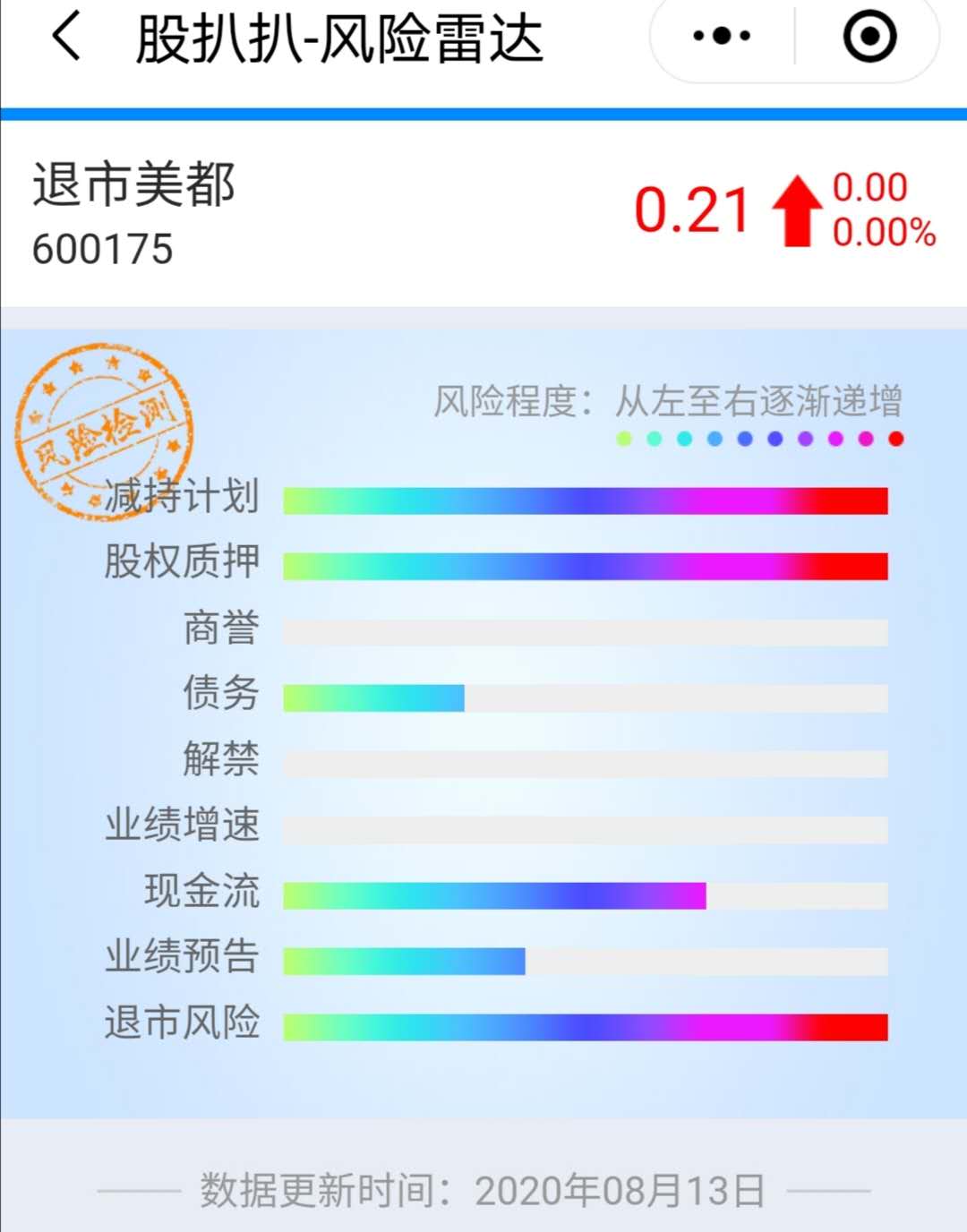 其实,对于个股风险,我们要提前预防,可以用专业的风险排除工具,股扒扒小程序来看一下。比如输入600175,就可以看到美都能源相关信息。