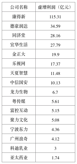 从财务造假方式来看,大部分企业通过多种手段虚增营业收入,或少记财务费用,从而虚增利润,也有部分公司采取虚增银行存款等方式。单从虚增利润的角度,《华夏时报》记者选取了16家,虚增利润较大的公司,进行了盘点。