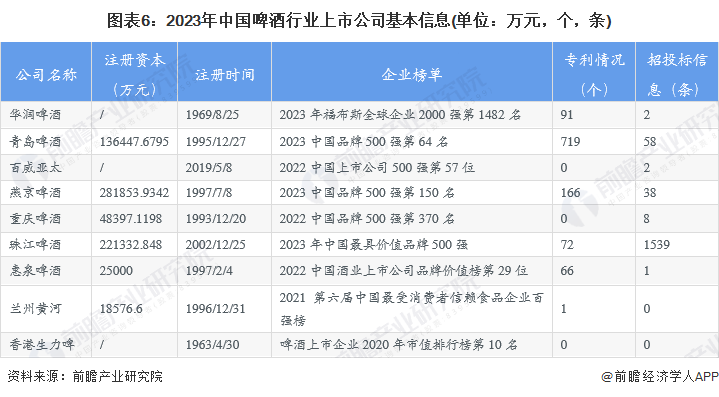 2、啤酒行业上市公司基本信息对比