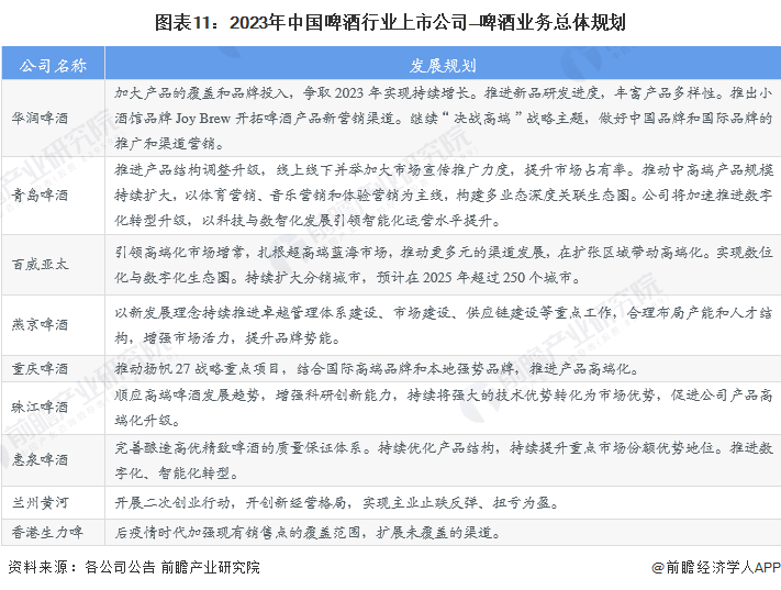 5、啤酒行业上市公司业务规划对比