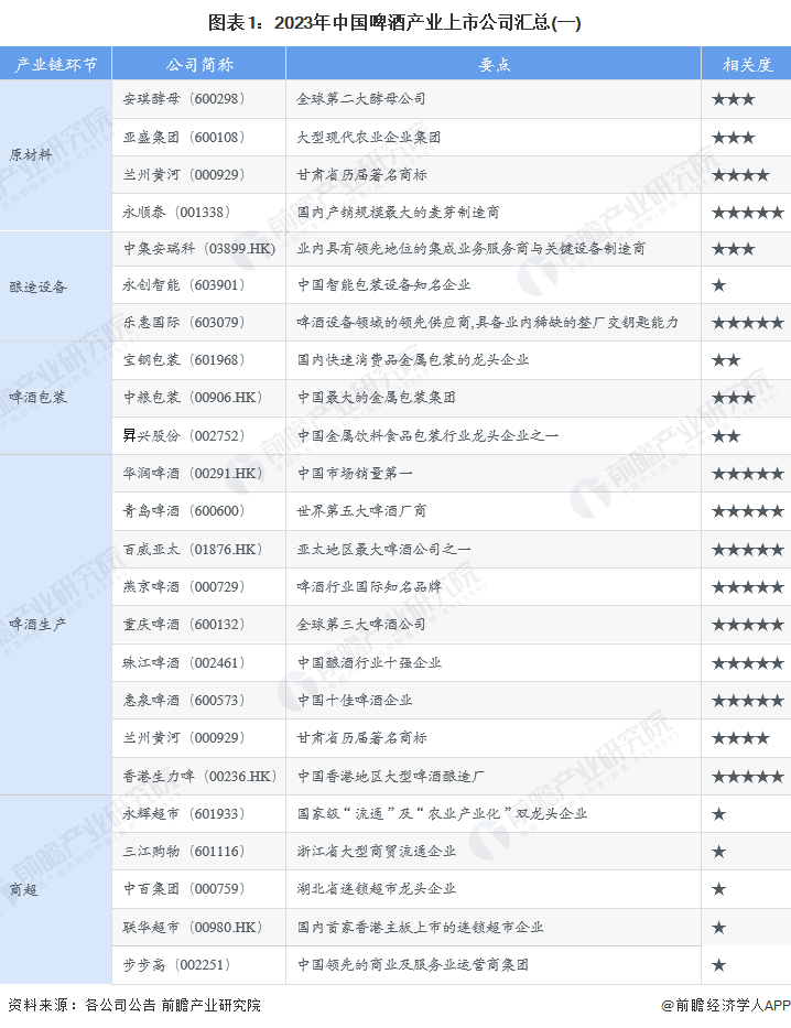 1、啤酒产业上市公司汇总