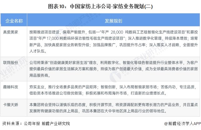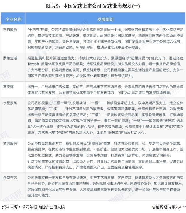 注:家纺产品营业收入及毛利率为2023年上半年数据,产销量为2022年全年数据。4、家纺行业上市公司业务规划对比