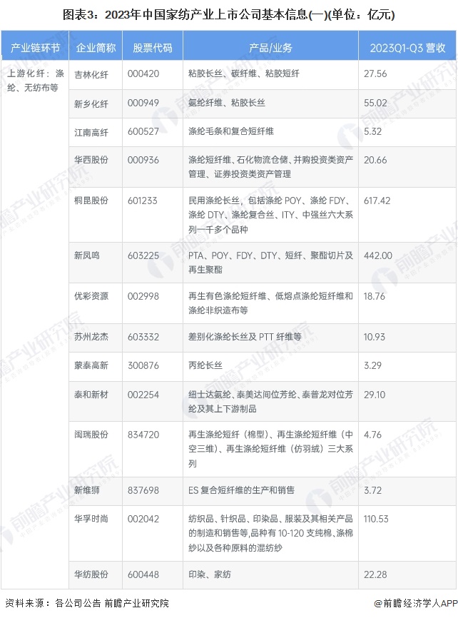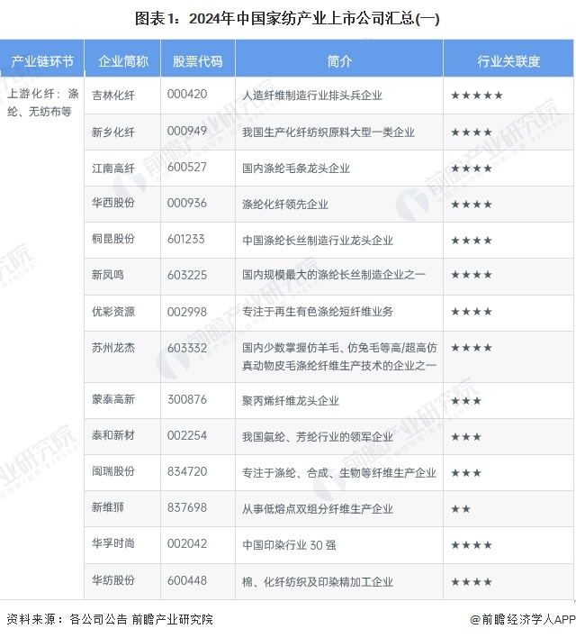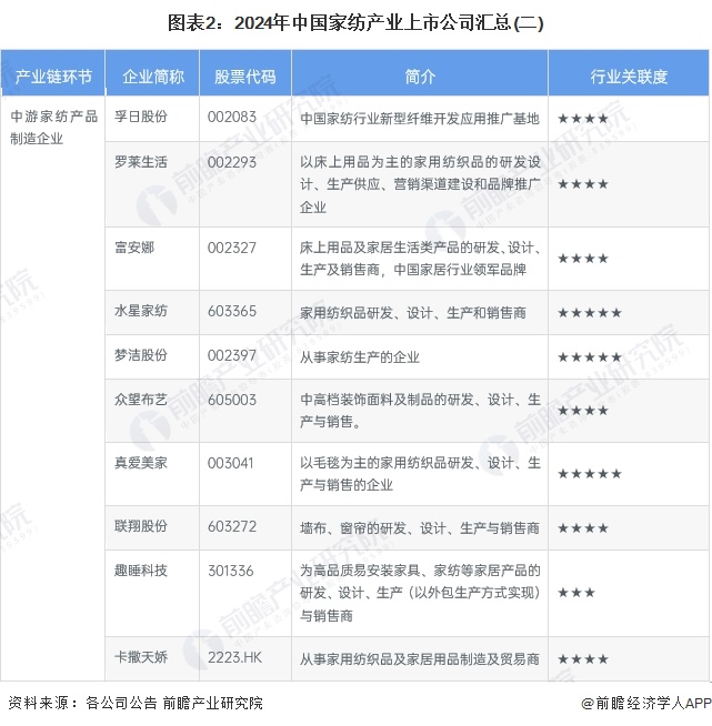 1、家纺行业产业链上市公司汇总
