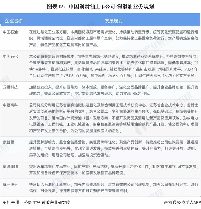 2、润滑油行业上市公司业务布局对比