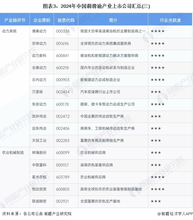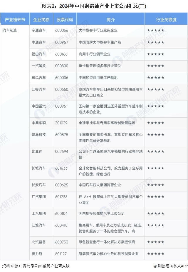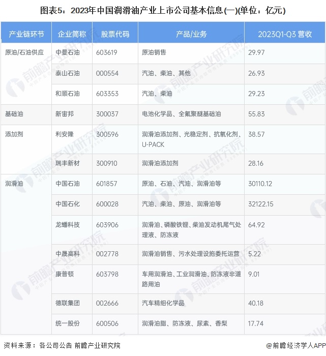 1、润滑油行业产业链上市公司汇总