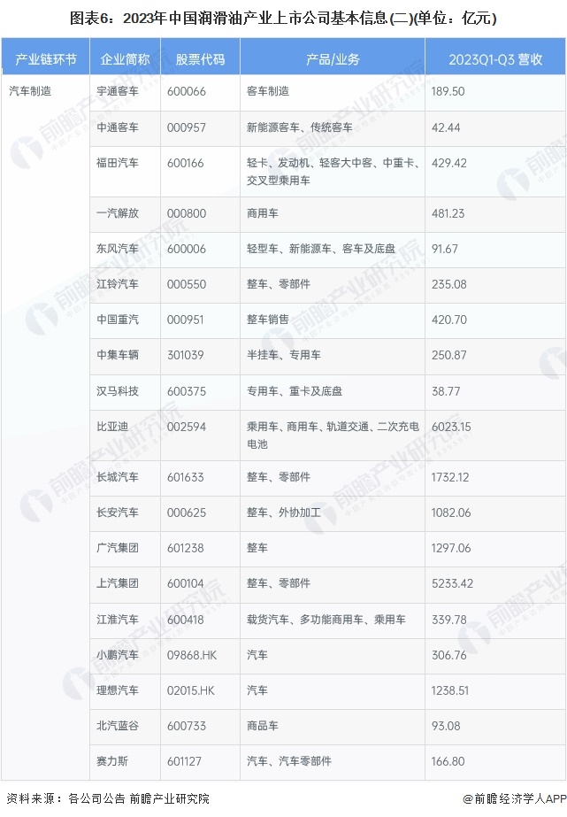 注:该图表为2023年上半年数据。3、润滑油行业上市公司业务业绩对比