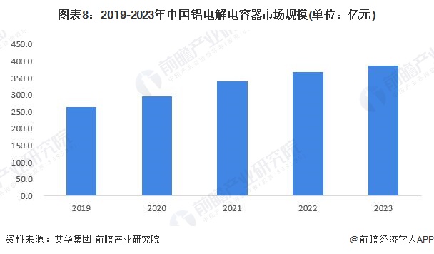 根据艾华集团公布信息,2020年我国铝电解电容器市场规模约为296亿元,同比增长11.6%。结合近年来中国铝电解电容器代表性厂商的经营情况以及全球铝电解电容器发展状况,前瞻初步核算2023年中国铝电解电容器市场规模约386亿元。