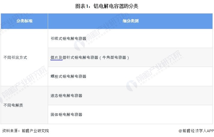 根据电容器引出方式分类,铝电解电容器主要可以分为引线式铝电解电容器、焊片及焊针式铝电解电容器和螺栓式铝电解电容器。