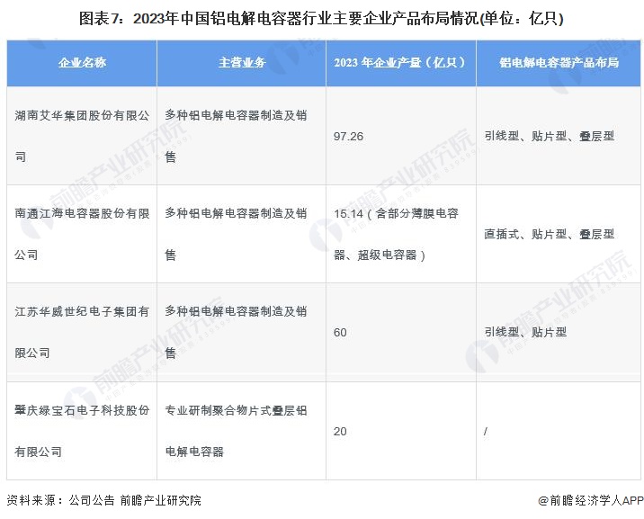 行业主要上市公司:艾华集团(603989);江海股份(002484);绿宝石(831804)等