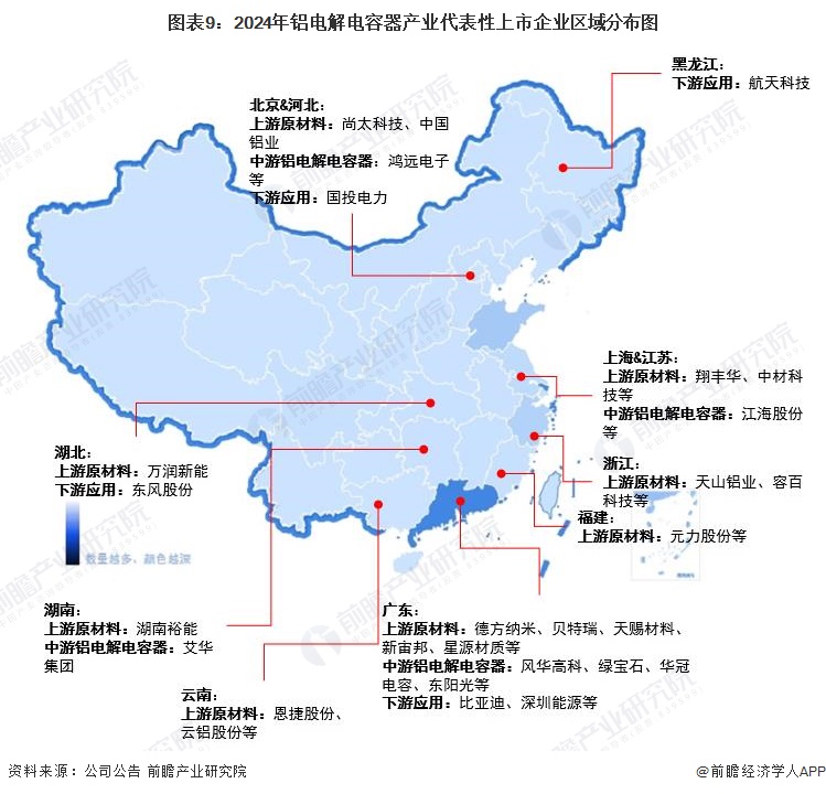 中游铝电解电容器生产商有艾华集团、江海股份、华威电子、东莞东阳光、绿宝石等企业。下游则是各类应用领域企业。