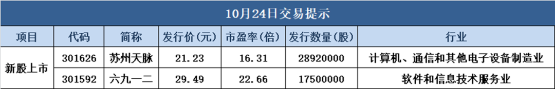 ●工信部:工业和信息化部新闻发言人、总工程师赵志国10月23日在国新办发布会上表示,接下来,工业和信息化部将聚焦加快推进新型工业化这一关键任务,在稳增长、扩需求、增动能、优环境方面下更大功夫。在增强发展动能方面,深入实施制造业重大技术改造升级和大规模设备更新工程,推进制造业数字化转型。加快推进重点产业链高质量发展行动、国家科技重大专项和国家重点研发计划等,取得更多标志性成果。研究制定提升产业科技创新能力的政策措施,促进科技创新与产业创新深度融合。培育壮大低空经济、商业航天、生物制造等新产业新赛道。