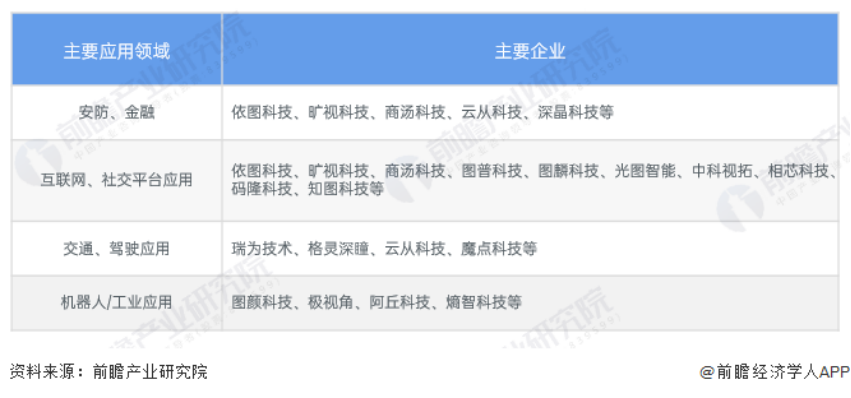 消费领域应用方面,目前主流消费级机器视觉应用包括:扫码识别、生物识别(人形/人脸/手势等)、安防监控、路线规划、3D成像等。其中生物识别及3D成像市场近年来尤其火热,其所采用的主流机器视觉方案有三种:结构光、TOF、双目立体成像。消费级机器视觉用到的硬件设施较少,其以机器视觉软件或算法技术为关键点。我国开展消费领域的机器视觉公司规模普遍较小,但也不乏行业领军企业海康机器人和一些新贵,如旷视科技、商汤科技、云从科技等。