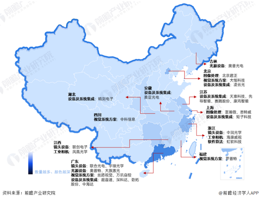 从中国机器视觉行业主要竞争者的区域分布来看,中国机器视觉厂商主要分布在南方地区,其中以广东最为集中,奥普特、劲拓股份等业内上市企业均位于广东深圳;其次,北京和浙江地区也是机器视觉企业分布较为集中的地区,代表企业有海康机器人、凌云光等。