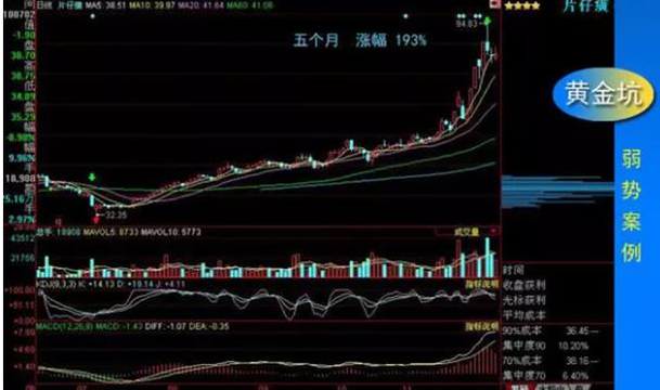 几乎所有牛股,在启动行情之前,都要向下挖坑。因为挖坑之后,可以诱惑散户以为主力要出货,形成一种假象!这以后,股票价格扶摇直上,所以坑中的筹码显得无比珍贵。而这个坑就叫做“黄金坑”!这也是“黄金坑”选股战法的由来!