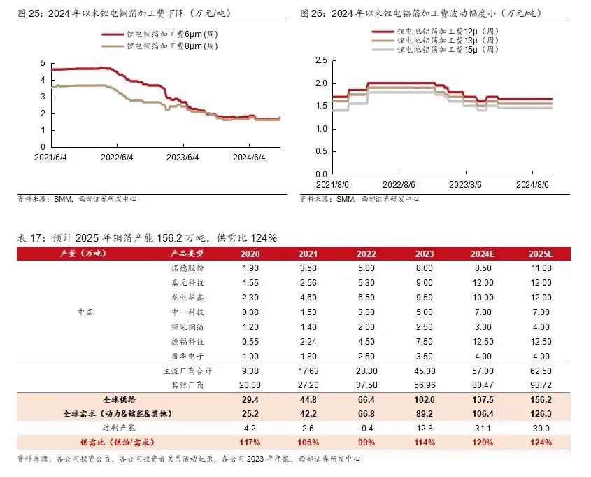 1)业绩层面,碳酸锂周期拐点+部分环节格局边际优化,带来较高的业绩增长确定性。高成本锂矿今年来纷纷减产、停产,行业边际成本增加,锂盐价格有望迎来触底回升,碳酸锂链条冶炼、正极、六氟等环节有望从库存亏损转变为库存收益,业绩迎来改善。从供需平衡表来看,磷酸铁锂、负极、六氟、铝箔等环节25年供过于求情况有望改善,在行业产品高端化的趋势下,头部厂商的产能更加紧俏,高端产品供需情况优于行业水平,头部企业盈利有望提升。推荐尚太科技、天赐材料,建议关注湖南裕能、天际股份、鼎胜新材。