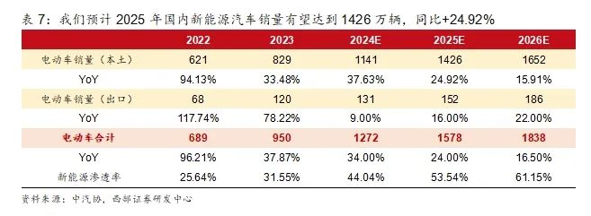 2.1 国内新能源车:预计2025年国内新能源汽车销量有望达到1426万辆,同比+25%