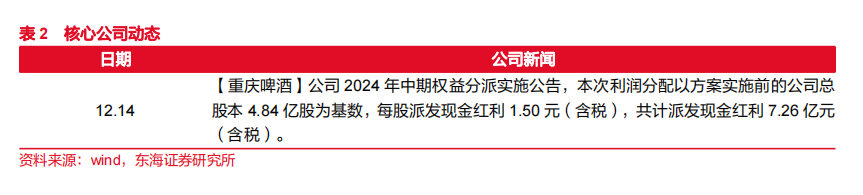 政策定调积极,扩内需为首要任务。本次中央经济工作会议将“大力提振消费、提高投资效益,全方位扩大国内需求”摆在明年9项重点任务之首。在明年政策预期向好的背景下,期待消费复苏改善。食饮板块的市场关注度得到提升,明年板块基本面有望迎来拐点。