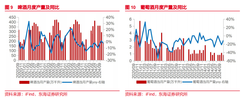 啤酒10月产量180.70万千升,同比下降2.30%。葡萄酒10月产量0.80万千升,同比下降11.10%。