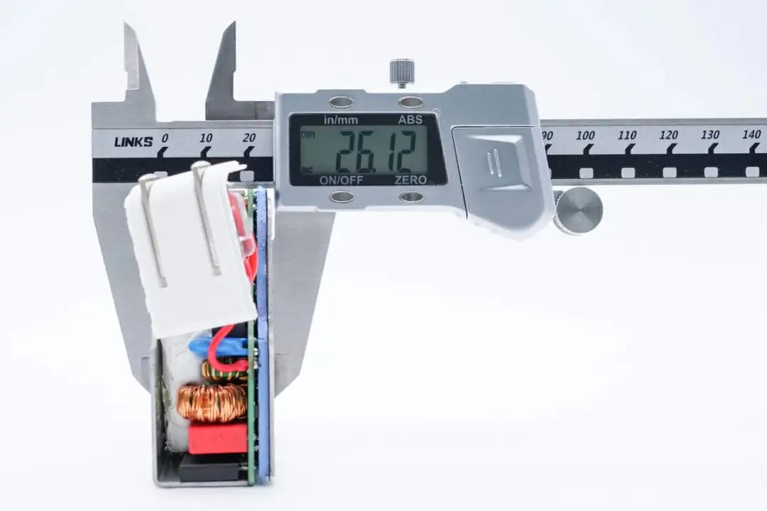 使用游标卡尺测得PCBA模块长度约为64.9mm。