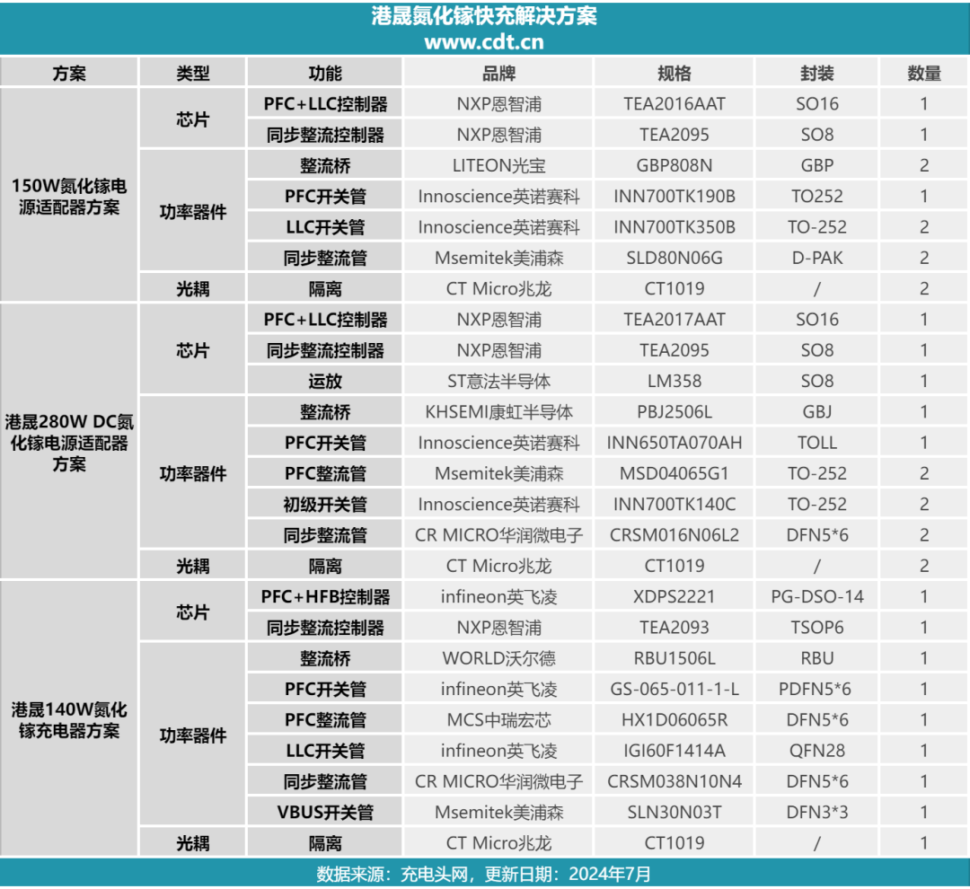 现充电头网将对港晟电子推出的三款氮化镓快充解决方案进行详细介绍和拆解解析,并已将方案中所用到的物料整理成下表所示,方便各位工程师高效地开发和优化快充产品,提升整体设计和生产效率。