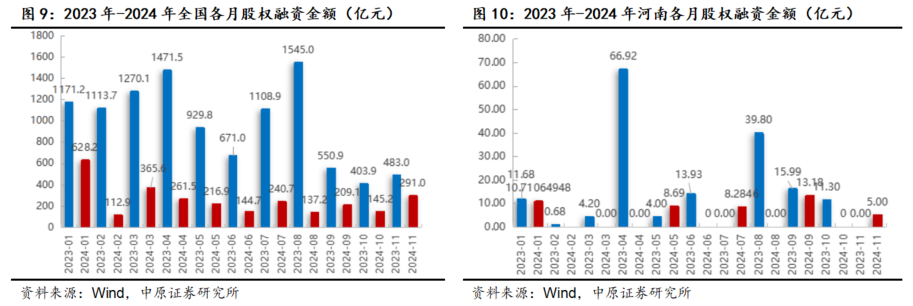 宏观政策跟踪: 2024年11月金融监管部门在推进高水平对外开放、稳定房地产市场以及数字经济发展等方面出台了系列政策。河南省及各地市政府在培育壮大先进产业集群、做优做强区域经济等方面出台了系列政策。具体包括:《支持郑州经济技术开发区发展新质生产力打造高质量发展新高地若干政策》、《河南省算力基础设施发展规划(2024—2026年)》等;中部六省其他省份也发布有关促进产业高质量发展的政策措施。