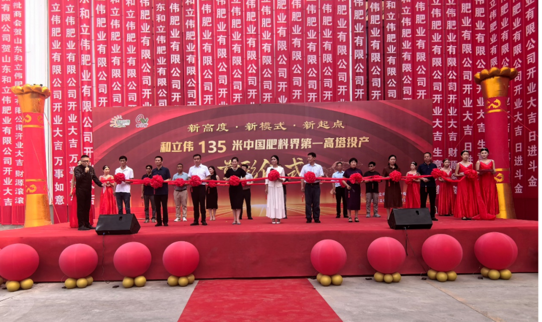 2024年8月16日,高达135米的高塔复合肥“新地标”在位于山东金乡的和立伟厂区建成投产。当日,近500位肥料行业代表和农资经销商来此打卡见证。高塔复合肥在中国推广20余年,已经成为生产高品质复合肥的主流技术路线。此次建成的装置总投资约4亿元,塔高地上部分135米、塔径20米,创下行业新纪录,被业内称为肥料行业“第一高塔”,标志着高塔复合肥技术又有新的突破。