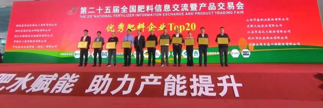 2024年10月23日,第二十五届全国肥料信息交流暨产品交易会在武汉国际博览中心隆重开幕。大会经农业农村部批准,由全国农业技术推广服务中心、中国农业技术推广协会主办,主题为“肥水赋能 助力产能提升”。华昌化工作为全国大型肥料生产企业,积极参会,展示大厂风范。此次会上,华昌化工被授予“优秀肥料企业TOP20”称号,并在2023—2024年化肥农药减量增效优秀范例征集活动中荣获“示范企业”称号。