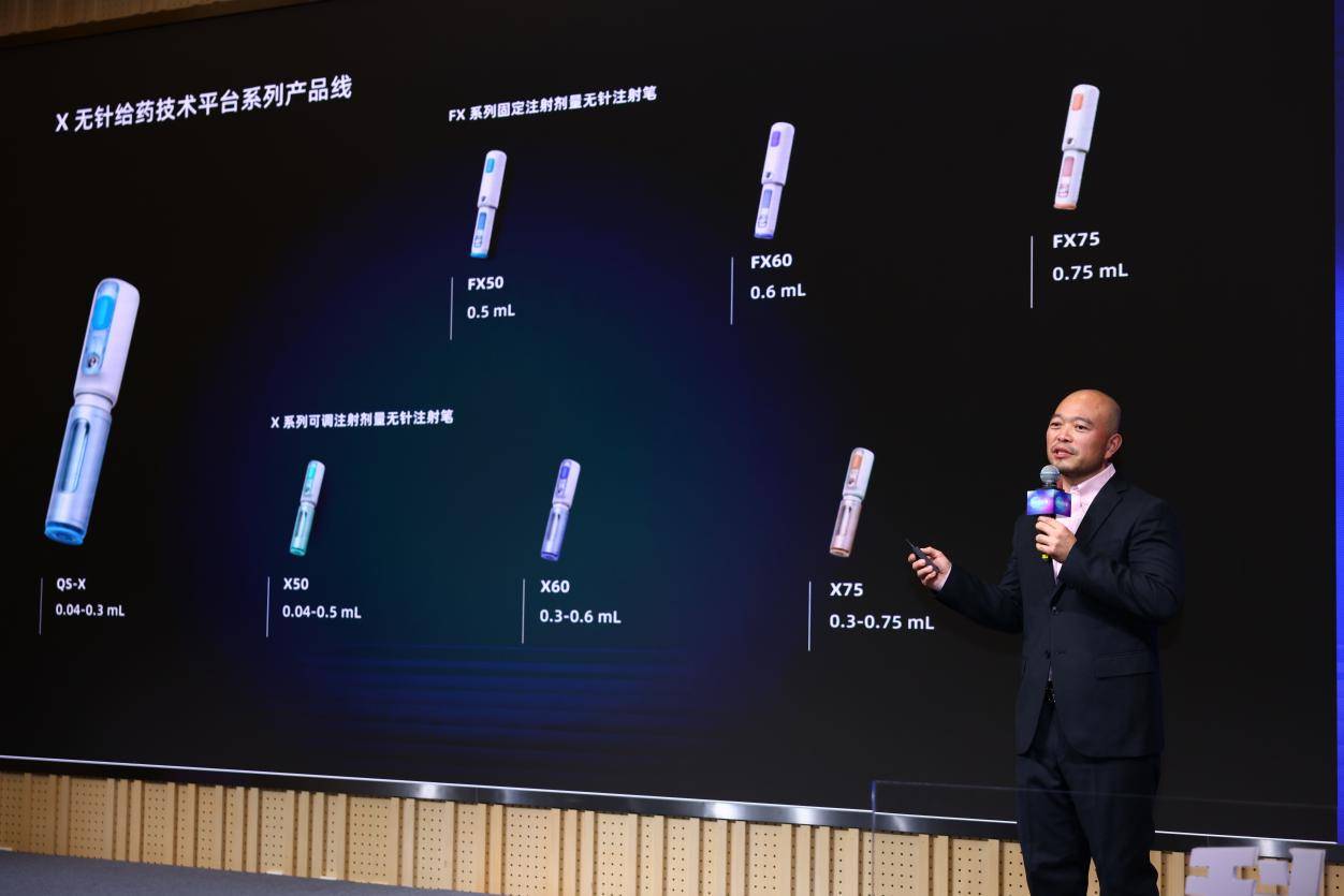 - “QS - X”药械结合型一体式无针注射笔:全球范围内开创性首次实现卡式瓶封装药品直接装入无针注射笔内与现在市场上最主流的胰岛素注射笔、肠促胰岛素注射笔,并可多次给药,此次峰会最大亮点是依托快舒尔“X无针给药技术平台”未来会陆续推出的从0.02到0.75毫升的更大治疗范围的药品合作。且操作流程与主流有针胰岛素笔基本一致,最大程度降低了用户的学习成本,使用户更简便从有针注射升级到无针注射。这一技术难点曾是全球同类企业多年来努力攻克的目标,而快舒尔凭借20年研发成果搭建的“X无针给药技术平台”,成为全球首个实现该技术量产且可为药企专项定制的药械结合平台。目前X给药技术平台”已申请专利23项,中国已成为无针给药技术的全球引领者。
