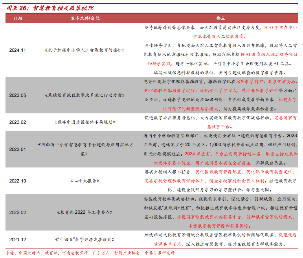 智慧教育受政策支撑推动明显,相关产品有望加快落地