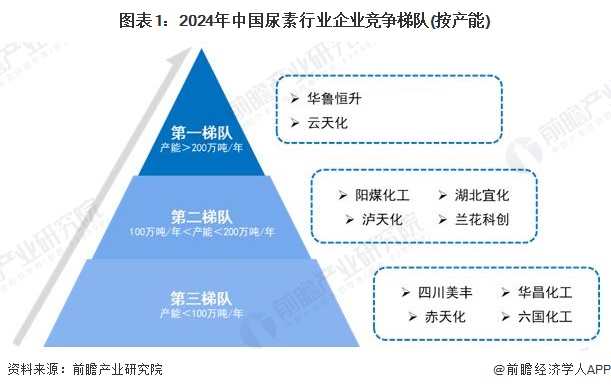 从中国尿素生产企业的产能竞争格局来看,中国尿素产能在200万吨以上的企业有华鲁恒升、云天化等,位列第一梯队;产能在100-200万吨的企业有阳煤化工、湖北宜化、沪天化、兰花科创等,位列第二梯队;产能在100万吨以下的企业数量较多,有四川美丰、华昌化工、赤天化、六国化工等,位列第三梯队。