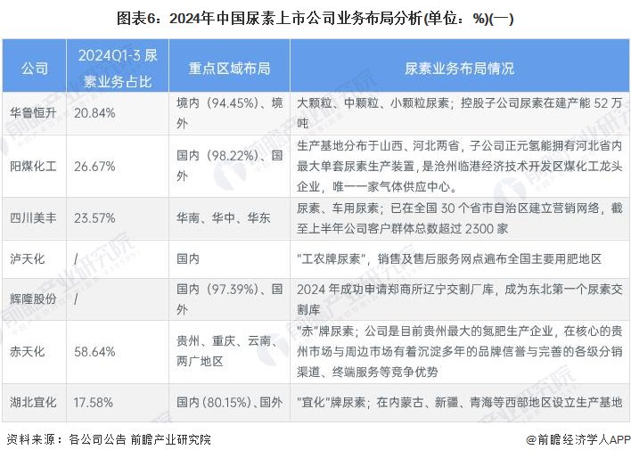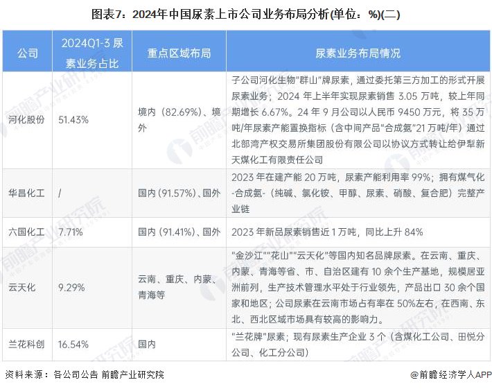 根据肥多多发布的数据,2024年前三季度,我国尿素产量累计4871.02万吨,结合上市公司公报披露数据,各公司市场份额具体如下所示: