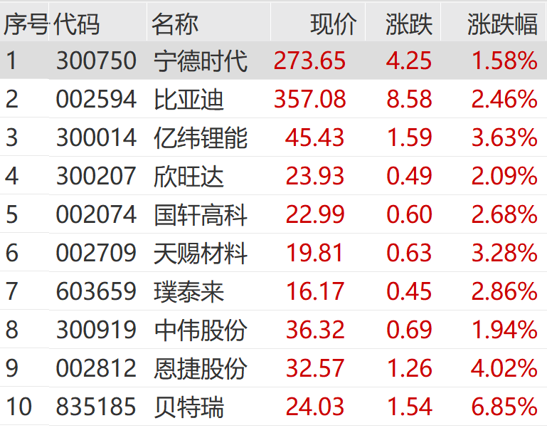 宁德时代、比亚迪、亿纬锂能等权重股,亦有明显涨幅。