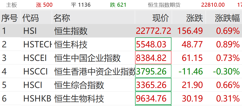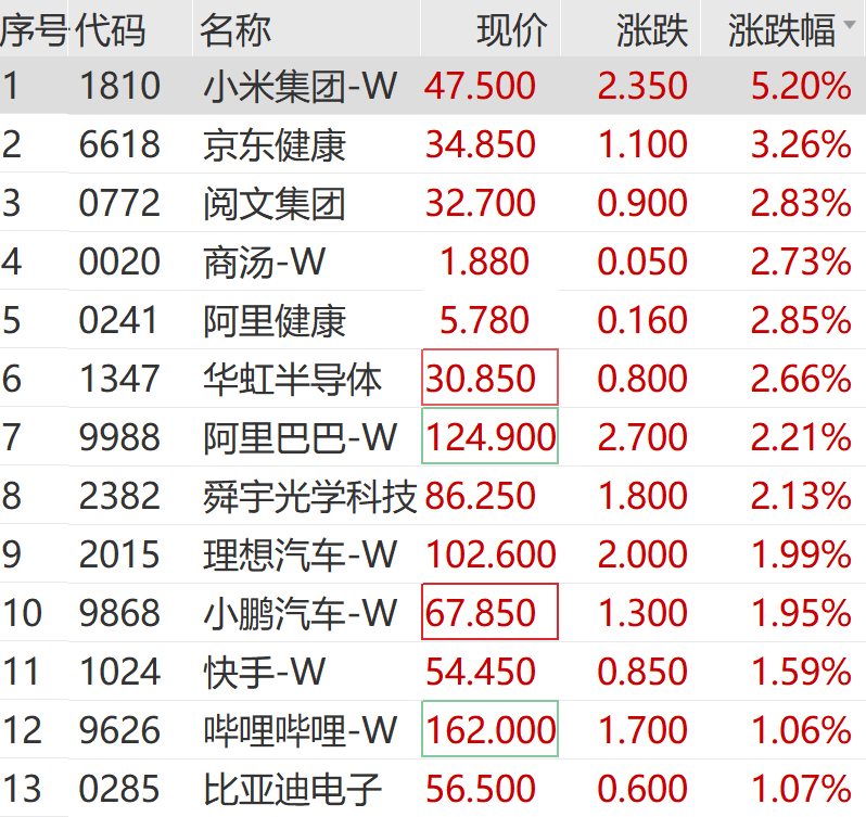 港股今日小幅高开,上午同样窄幅震荡。截至发稿,港股三大指数集体飘红;小米集团涨超5%,领涨恒生科技指数成份股。