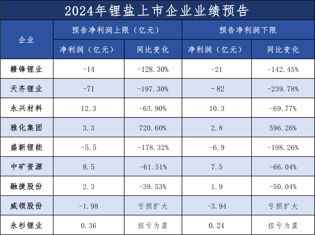 总体来看,行业仍处于亏损状态;尤其是天齐锂业和赣锋锂业2大龙头24年合计亏损或将超过100亿元。